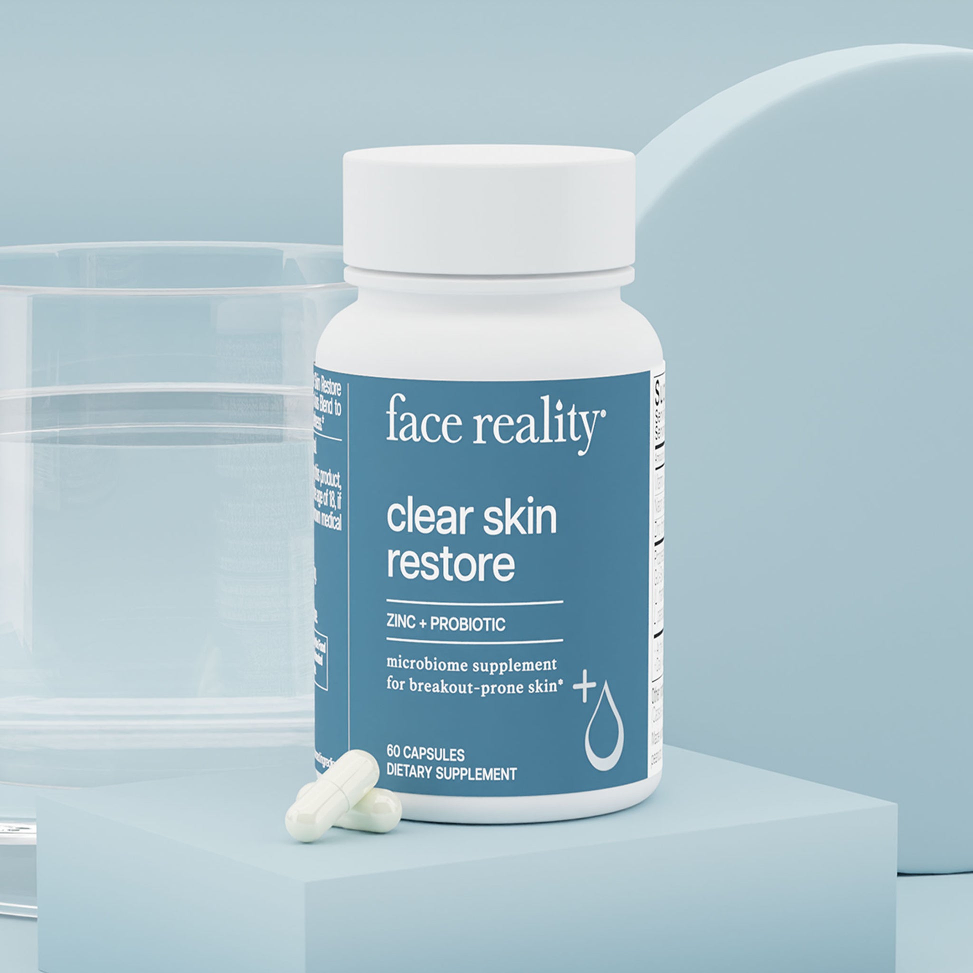 Developed by the #1 Professional Acne Brand, Clear Skin Restore contains Zinc and a proprietary Probiotic Gut-Skin Axis Blend to help clear skin while supporting overall health and wellness.*
