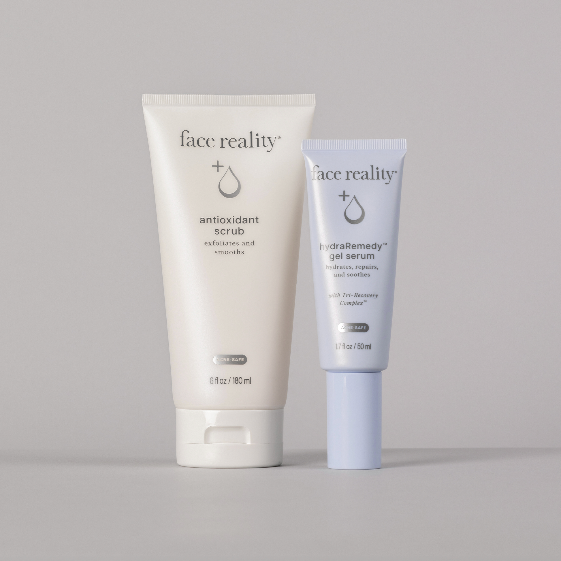 For men who keep it simple. This dynamic duo features Antioxidant Scrub for deep cleaning the face and body, gently buffing away dead skin, and hydraRemedy™ Gel Serum for daily hydration that doubles as a nourishing aftershave.